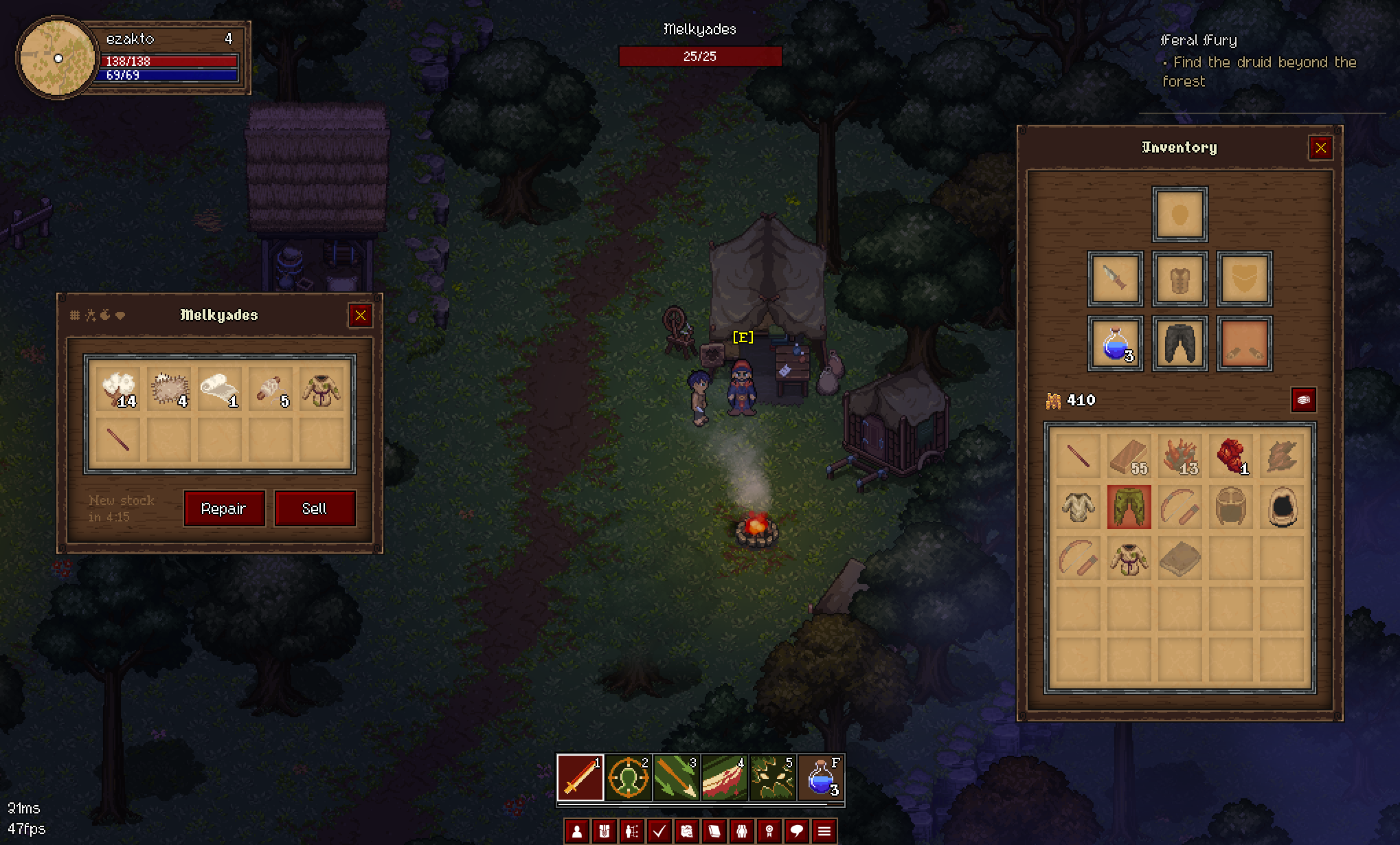 Taleth is a 2D real-time action MMORPG, playable instantly in your browser. Set in a quiet, low-fantasy open world, It's inspired by old-school classics like Diablo II and by the grounded charm of Graveyard Keeper and Stoneshard, blending their tone with the freedom of a living, handcrafted world. Every blade, loaf of bread, and thread of cloth can be crafted, traded, or fought over. Every town, ruin, and wild stretch of land is built by hand.
